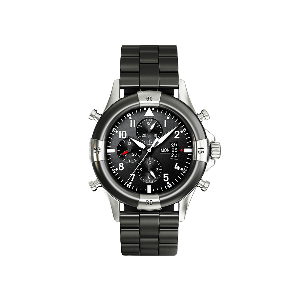 Elevate your style with this sophisticated chronograph watch featuring a sleek black dial, genuine leather strap, and precise timekeeping.